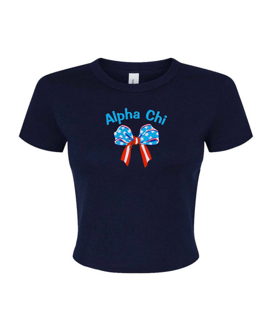 Embroidered Sorority American Bow Crop Top